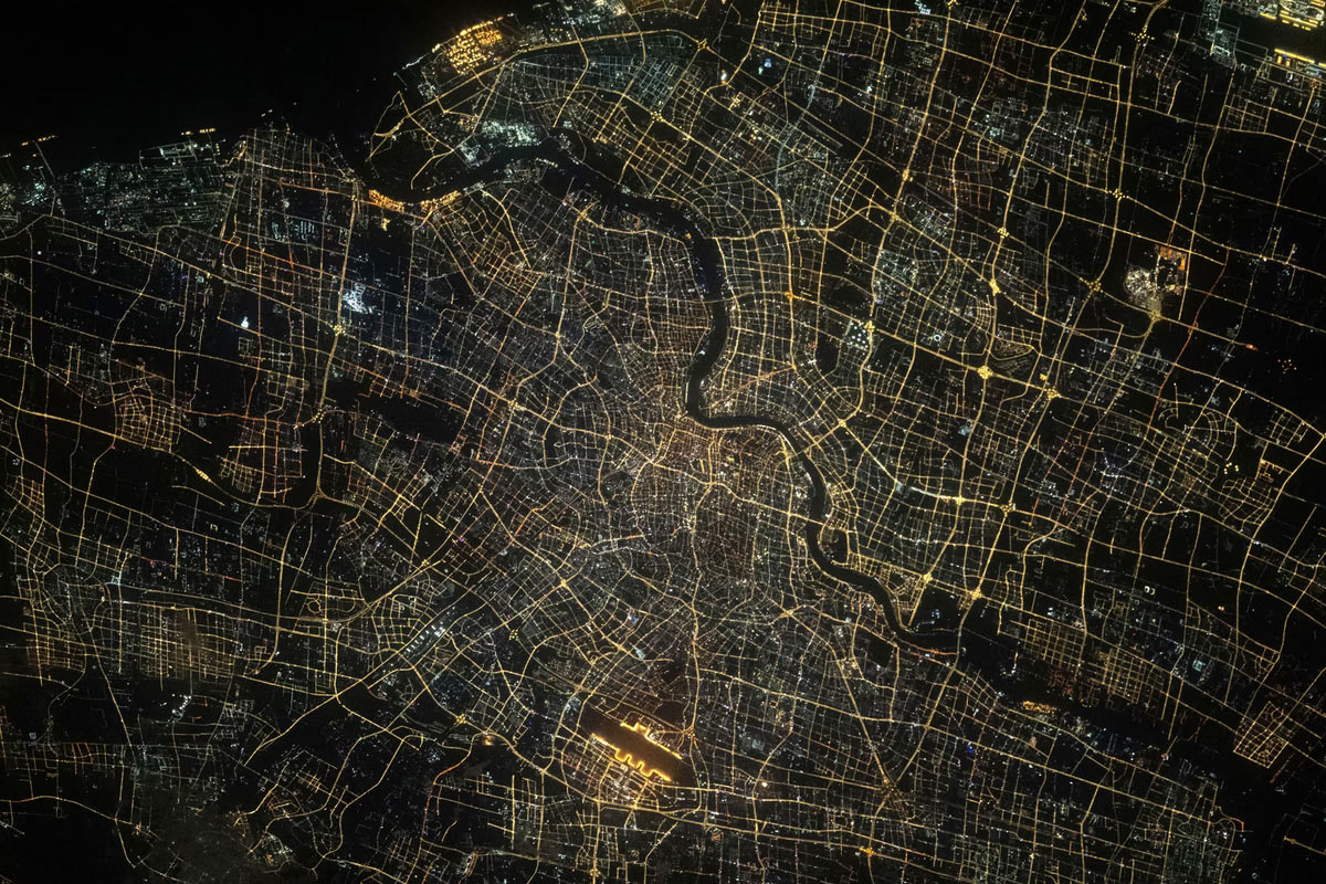 Ночной вид на Пекин, Китай. (Фото NASA):