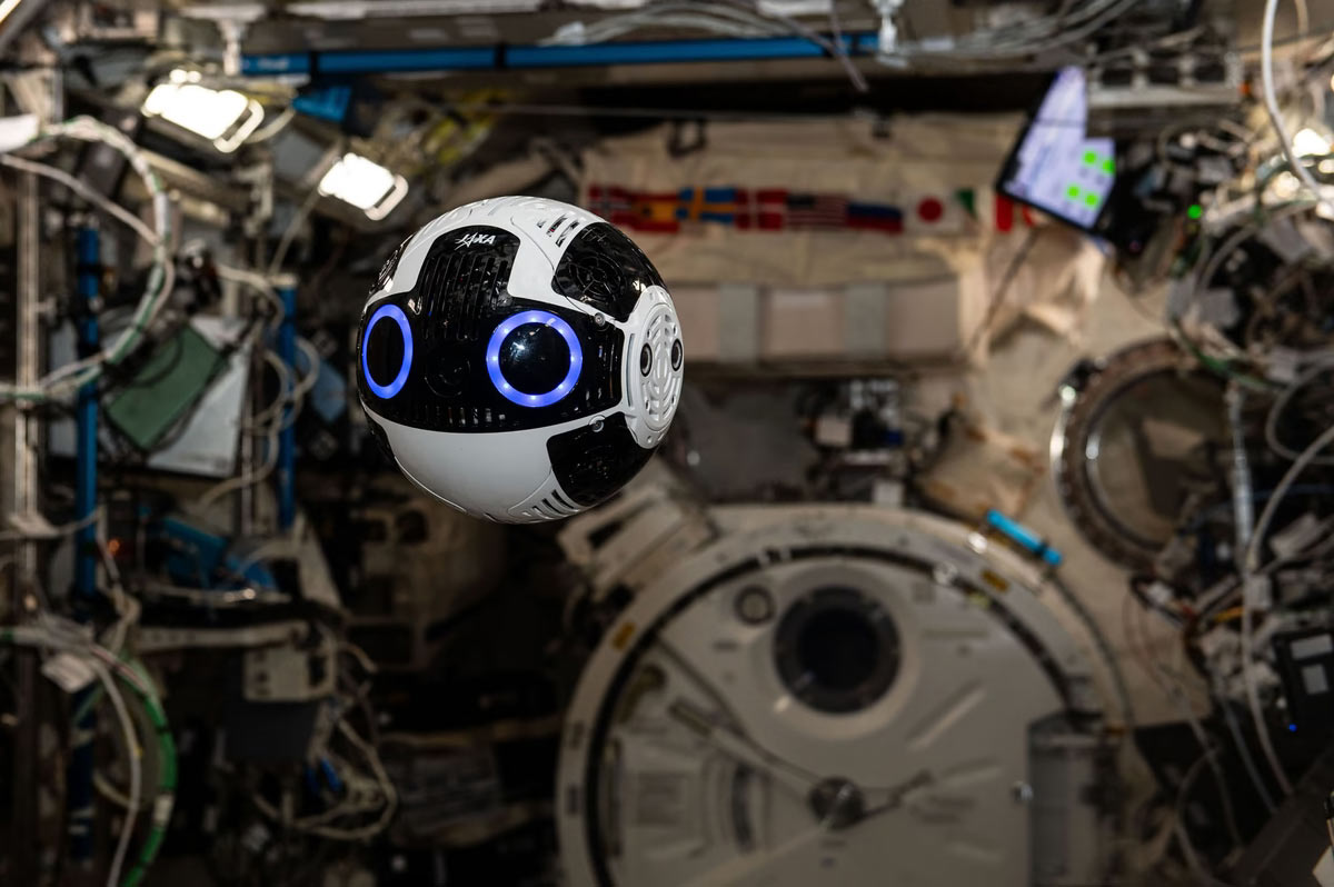 Int-Ball — японский беспилотный летательный аппарат (дрон, робот), «обитающий» на Международной космической станции (МКС), в японском модуле «Кибо». Робот создан методом 3D-печати и имеет вид стилизованного человеческого лица с двумя глазами, однако камера на нём лишь одна, между глазами. Согласно JAXA, дрон не требует от астронавтов абсолютно никакого внимания и освобождает их от ручного фотографирования результатов экспериментов, занимающего около 10 % ценного рабочего времени. (Фото NASA):