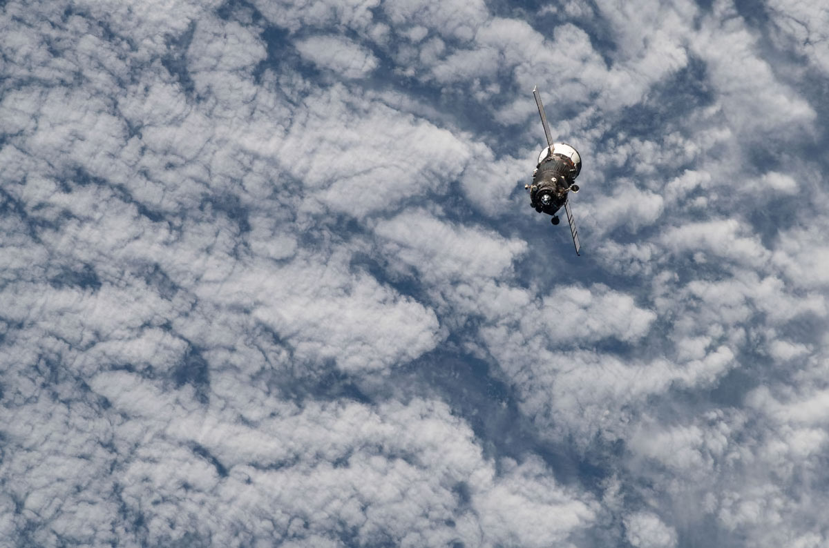 Грузовой корабль «Прогресс 85» виден вскоре после отстыковки от Международной космической станции 12 февраля 2024 года, когда он находился на орбите на высоте 415 км над Тихим океаном. (Фото NASA):