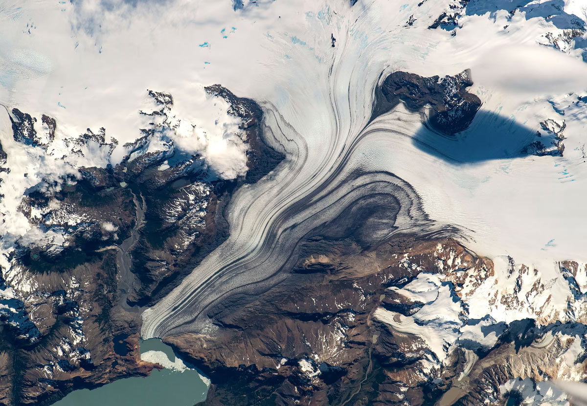 Орбитальный вид ледника Вьедма в Аргентине. (Фото NASA):