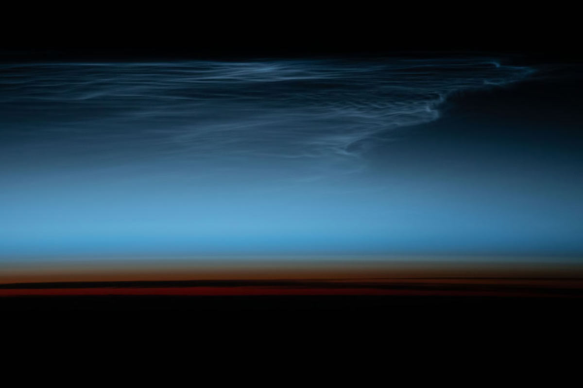 Серебристые облака наблюдались над южной частью Тихого океана. (Фото NASA):