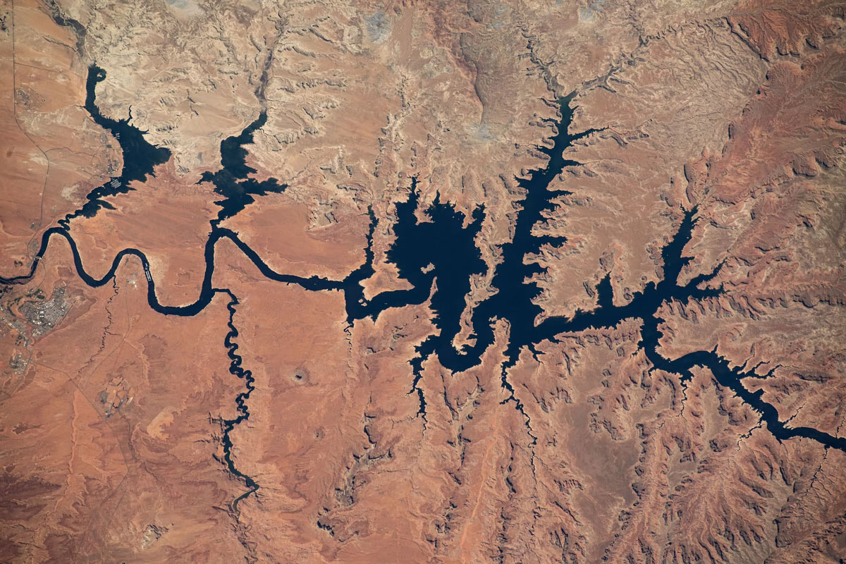 Озеро Пауэлл на реке Колорадо в Юте и Аризоне. (Фото NASA):