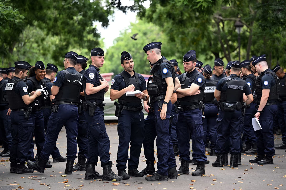 Полицейские получают инструкции во время подготовки к патрулированию города возле площади Бастилии в Париже, 23 июля 2024 года. (Фото Natalia Kolesnikova):