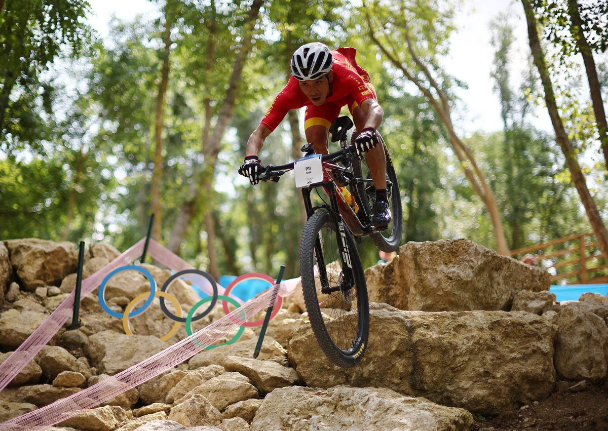 Тренировка на горных велосипедах на холме Эланкур в Траппе, Франция, 24 июля 2024 года. (Фото Agustin Marcarian):