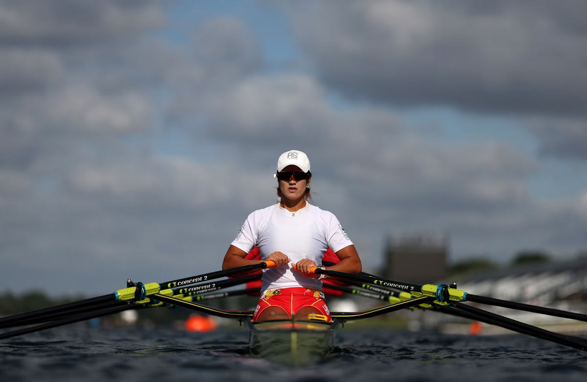 Сяотун Цуй, член женской сборной Китая в четверке парной, тренируется на морском стадионе Вэр-сюр-Марн 22 июля 2024 года. (Фото Alex Davidson):