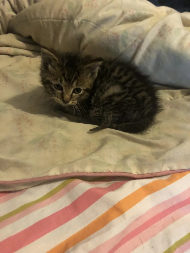Мы открыли дверь, а там котёнок. Решили взять малыша в дом