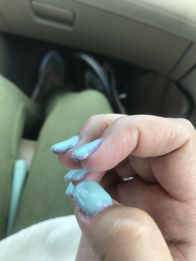 Клиентка некоторое время стеснялась обратиться в салон с претензией, но всё-таки нашла в себе силы и сделала это. К счастью, её маникюр взялся переделывать более опытный мастер.