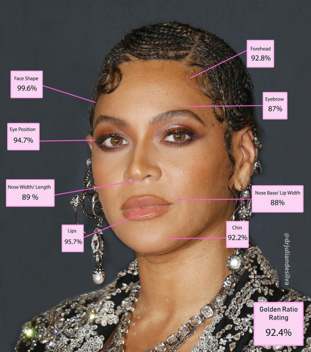В нижнем правом углу вы можете увидеть общий процент близости лиц участниц списка к идеалу золотого сечения.
