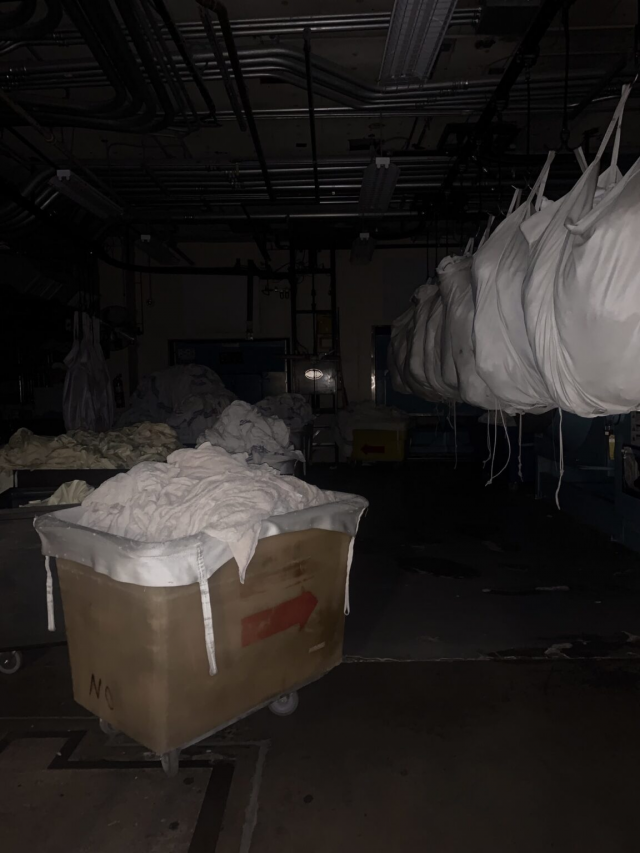 Это беспорядочные восковые фигуры с мешками на головах на моей работе. Это наш склад, и часть него отведена художникам, создающим музейные экспозиции.