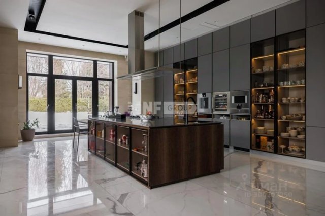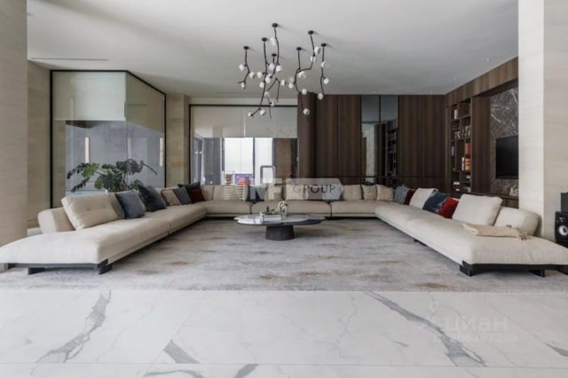 Цена вопроса — 750 миллионов рублей. Дом общей площадью в 1700 квадратных метров, внутри которого - гостиная с камином на 85 «квадратов», 6 спален (хозяйская - площадью в 100 квадратных метров), 11 (!) санузлов, крытый бассейн размером 15 на 4 метра, библиотека, сауна и хамам.