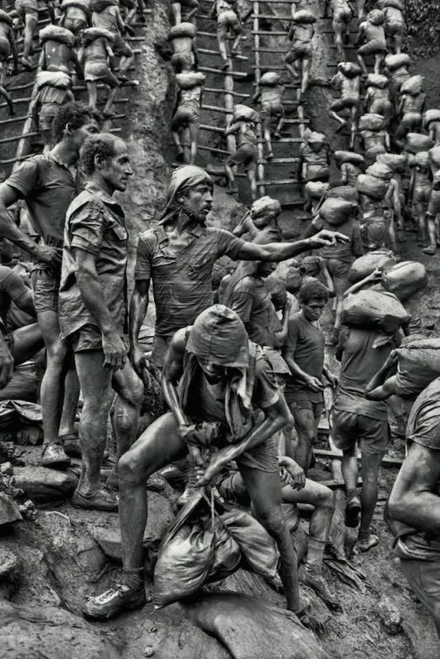 Изнурительный труд шахтеров на руднике Серра-Пелада в штате Пара, Бразилия. Ежедневно более 50 000 человек работают здесь, добывая золото. 1986 год.