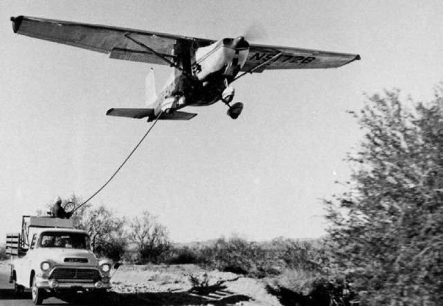 Дозаправка самолёта топливом в 1959 году.