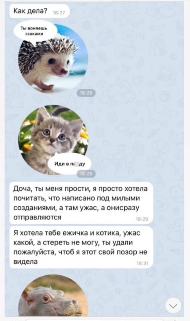 Когда объясняешь маме, как пользоваться мессенджерами 07/10/2024 21:40 Пытаться научить родителей пользоваться телефонами было тяжело, а если это мессенджеры, так вообще какая-то засада. Будьте осторожны. Главная / Картинки +1 Admin 0 155