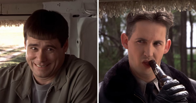 Остановив знаменитую парочку, офицер увидел у них в машине открытые бутылки из-под пива. Пригрозив тем, что в их штате это грубое нарушение закона, он приказал дать ему одну из бутылок и демонстрационно отпил, несмотря на то, что Гарри с Ллойдом, как могли, его отговаривали.