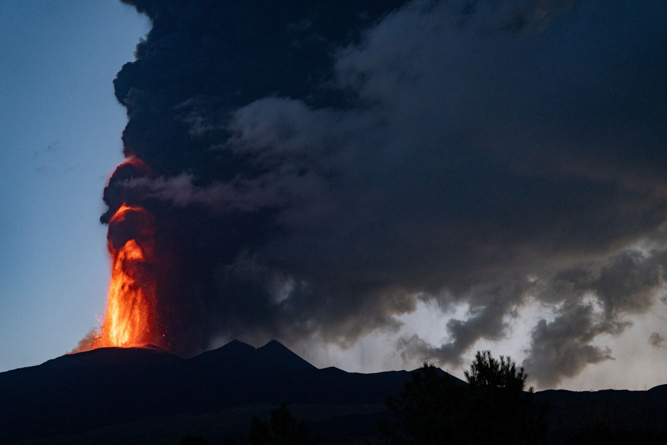 Человек наблюдает, как дым и лава поднимаются из кратера Этны, самого активного вулкана Европы в Италии. (Фото Marco Restivo):