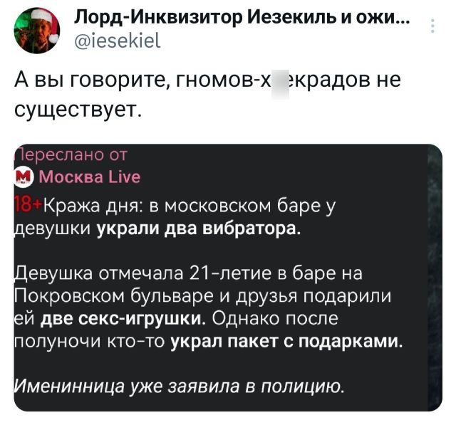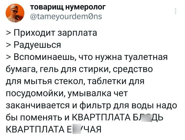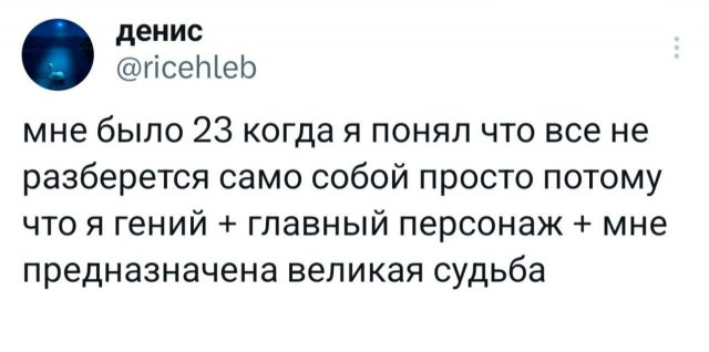 Смешные твиты на все случаи жизни: подборка 14/10/2024 23:30 Вот и новенькая подборка забавных твитов. Отличный повод закончить очередной понедельник. Так что всех милости просим в пост и желаем веселого просмотра! Главная / Картинки 0 Admin 0 203