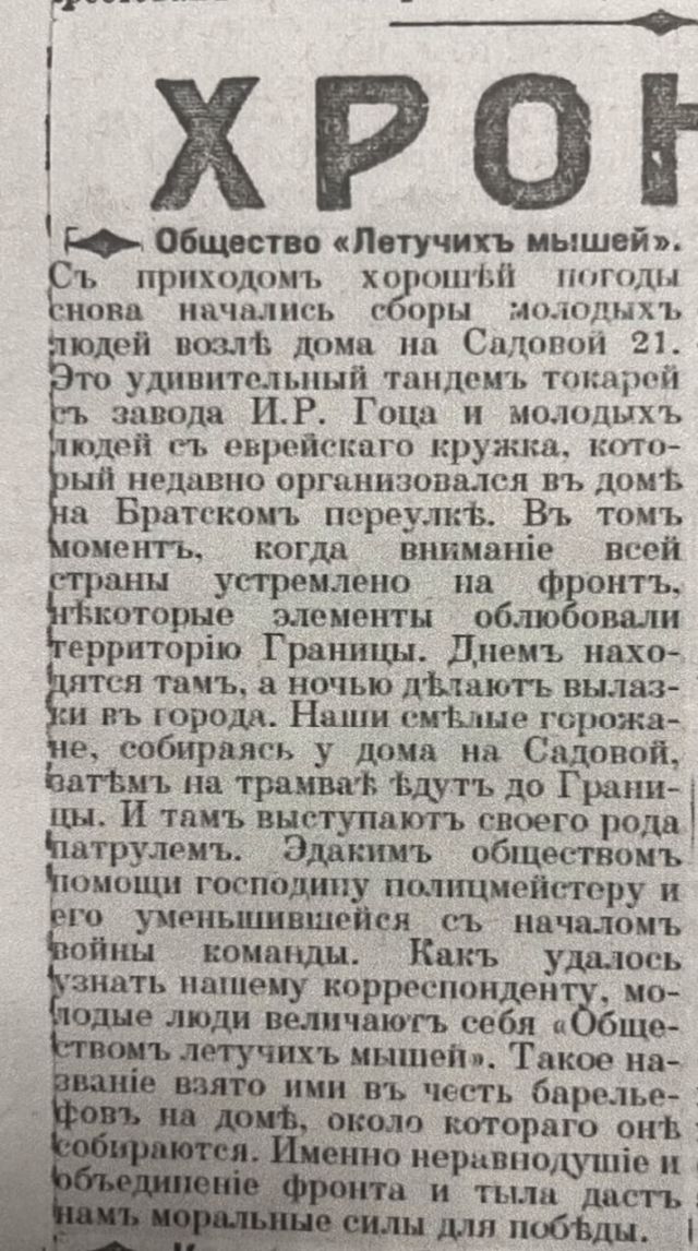 Ну что ж, давно у нас не было любопытных теорий, которые сложно опровергнуть и подтвердить. Вполне возможно, что Бэтмен парень не готэмский, а... ростовский. В сети рассказали, про "Общество Летучих Мышей" - это такой гражданский патруль, который образовался в начале 20 века в Ростове-на-Дону. Участники этого движения помогали полиции при нехватке кадров. Название выбрали не случайно - добровольцы собирались возле дома с масками летучих мышей по адресу Большая Садовая, 23. А теперь вишенка... Вероятно, Боб Кейн придумал историю Бэтмена, услышав от своих родителей (беженцев из Восточной Европы) рассказ об этом обществе. Совпадение?