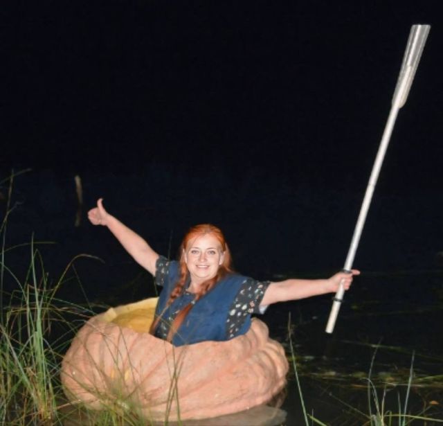 Женщина из Псковской области отправилась плавать в огромной тыквенной лодке