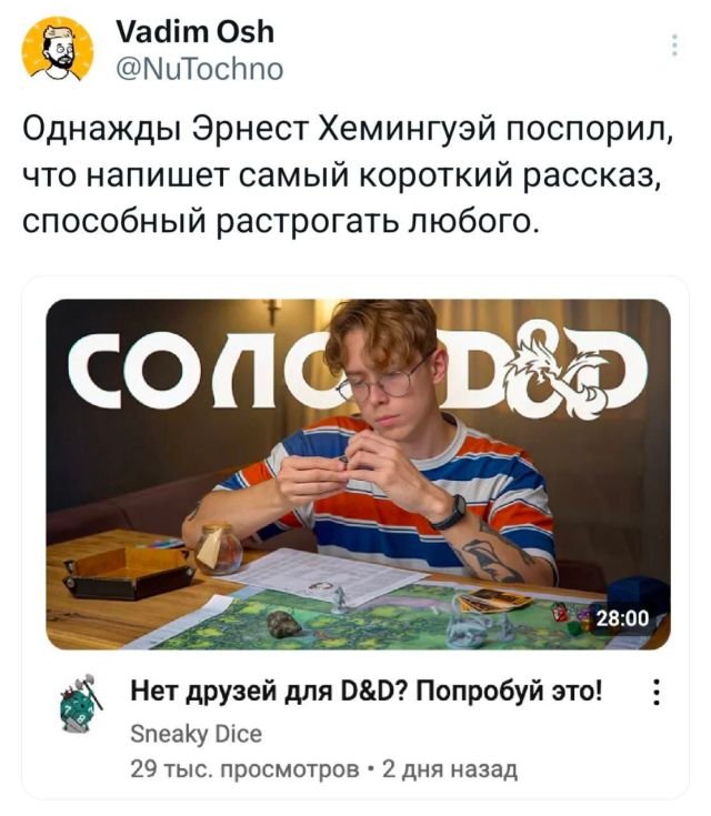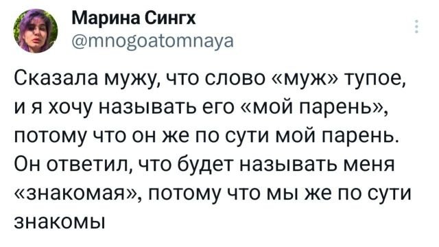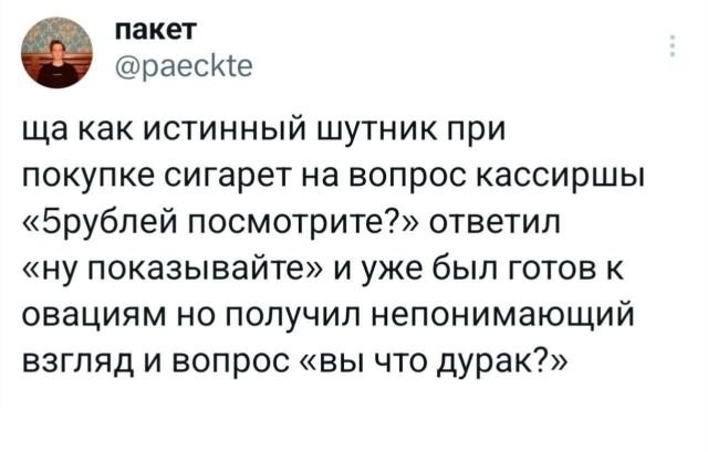 Коллекция смешных твитов на любые темы 17/10/2024 23:00 Вот и новенькая подборка забавных твитов. А это значит, что ближайшие пару минут пролетят весело и быстро. Всех милости просим в пост и желаем приятного просмотра. Главная / Картинки 0 Admin 0 204