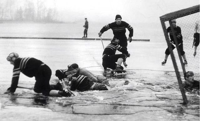 На полуфинале чемпионата Швеции по хоккею в 1959 году, игроки провалились под лёд.