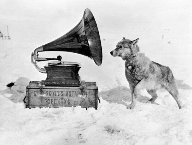 Ездовая собака слушает патефон, 1911 год.