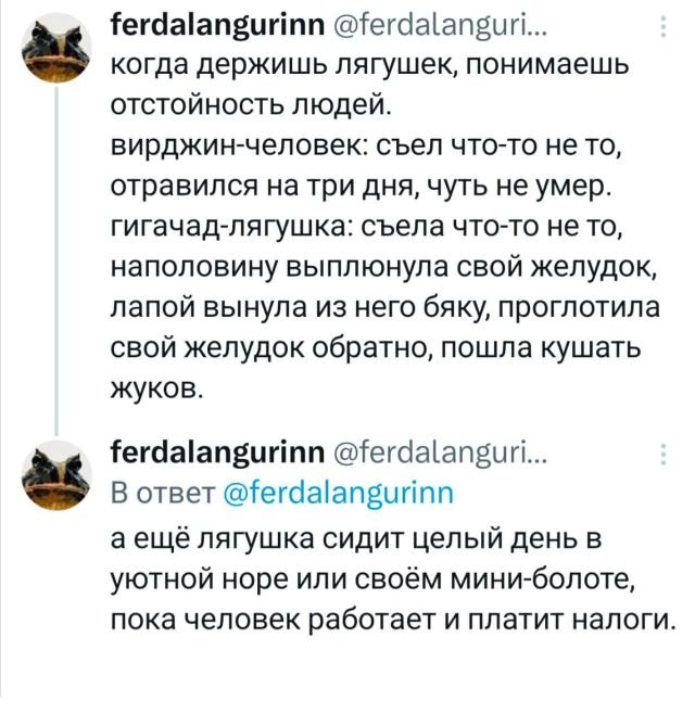 Подборка забавных твитов обо всем 24/10/2024 14:00 Вот и новенькая подборка забавных твитов. Самое то, что чуть расслабиться и поднять себе настроение. Так что не будем тратить драгоценные минуты перерыва. Лучше всех сразу пригласим к просмотру. Главная / Картинки +6 Admin 0 179