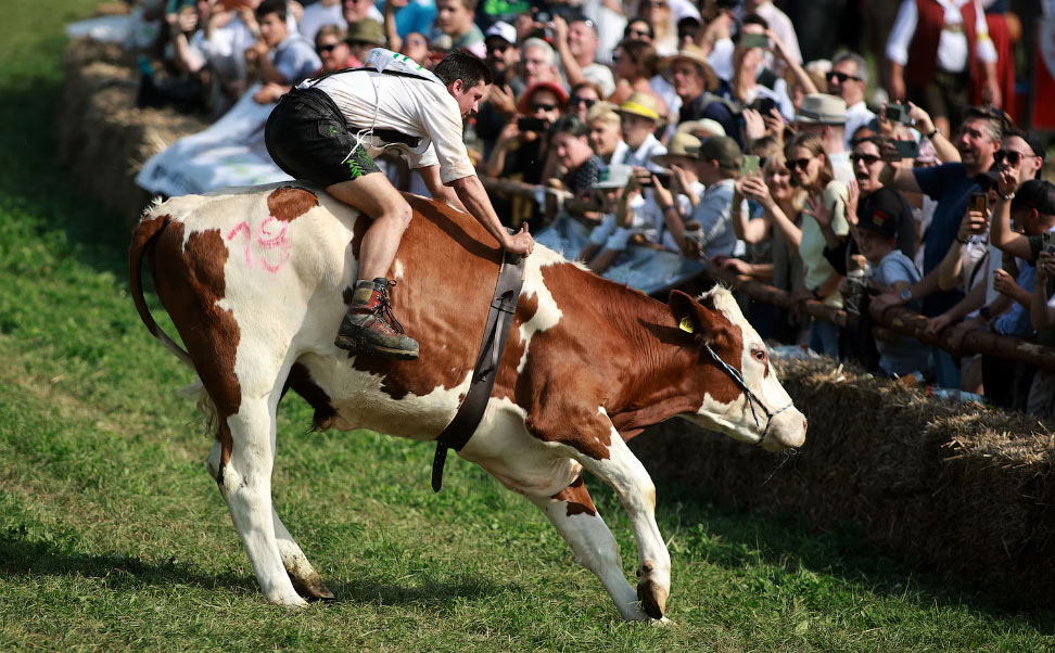 «Бег на быках Мюнзинга». Мероприятие, в котором состязаются гордость и слава местных быководов, проводится только раз в четыре года. (Фото Johannes Simon):