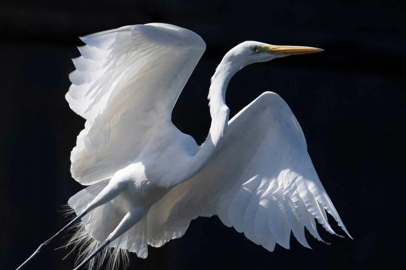 Большая белая цапля взлетает в заливе Гуанабара в Рио-де-Жанейро, Бразилия. (Фото Pablo Porciuncula):