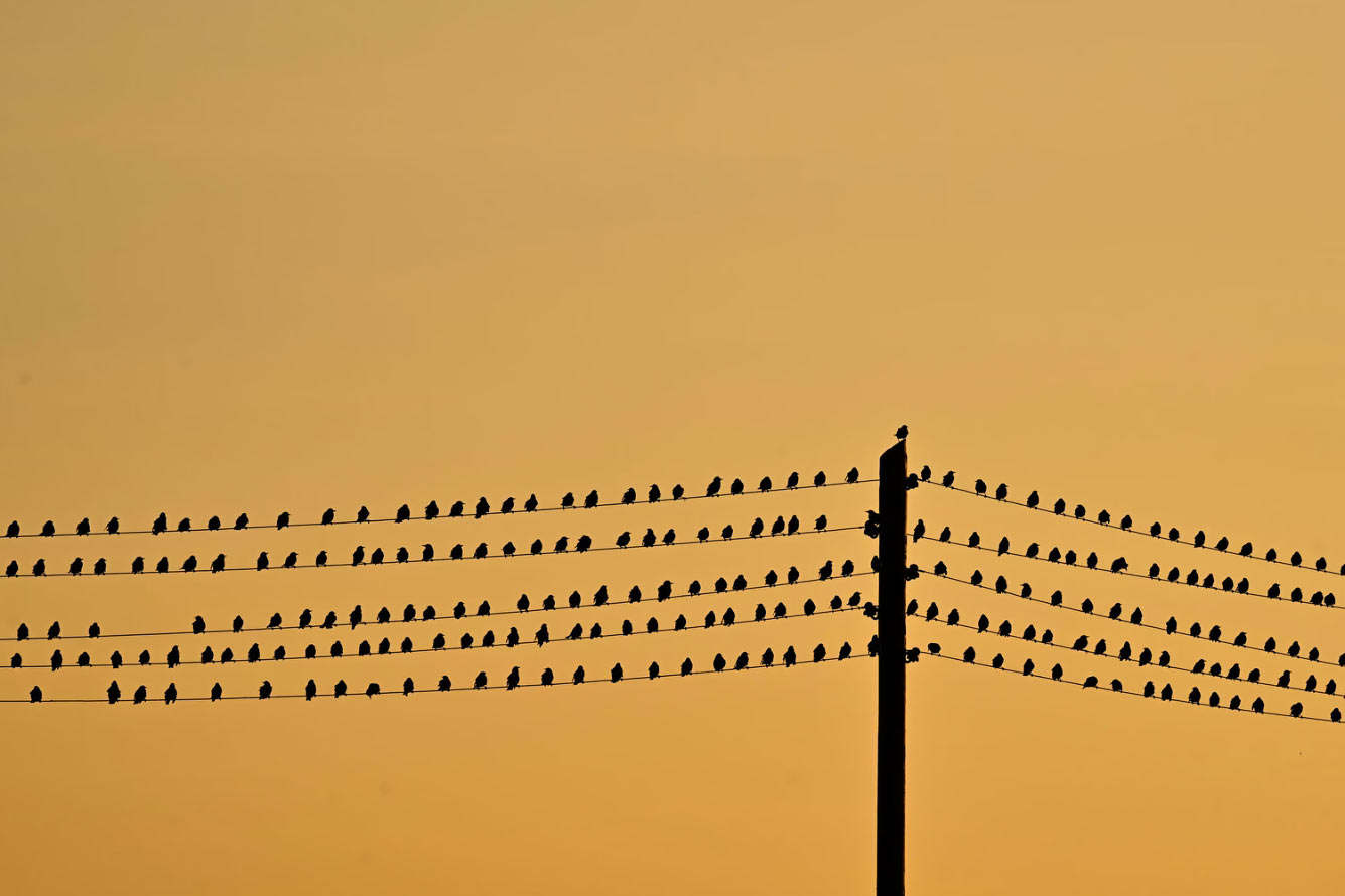 Скворцы гнездятся на электрических проводах на закате в деревне Куюджук, в районе Арпаджик города Карс, Турция. (Фото Ismail Kaplan):