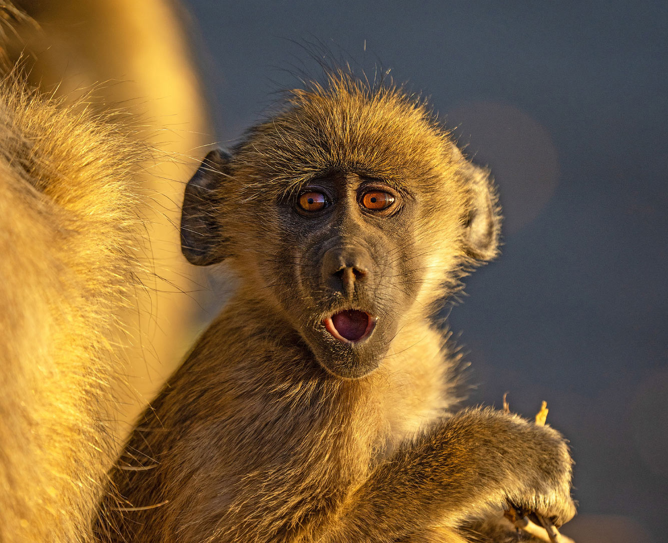 Детеныш бабуина, сфотографированный во время зевания в национальном парке Чобе, Ботсвана. (Фото Nick Dale):