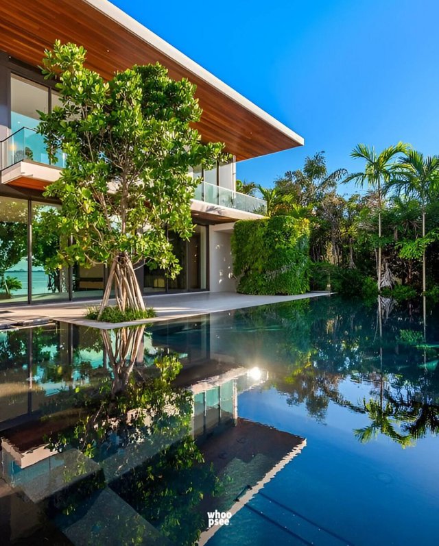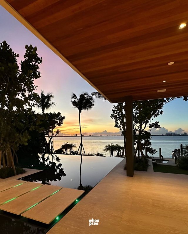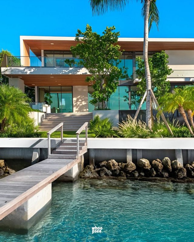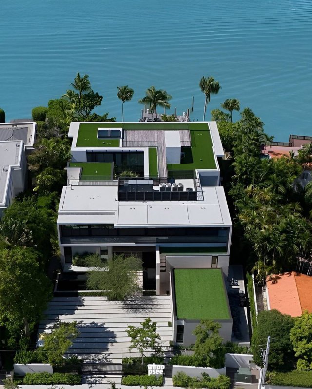 Этот особянк создан архитектурной студией Choeff Levy Fischman, он находится в заливе Бискейн на острове Норт-Бэй. Двухэтажный дом площадью более 1000 квадратных метров имеет 9 спален и 13 ванных комнат, спа-центр с массажным кабинетом, тренажерный зал, бассейн, террасу на набережной и кинотеатр. Сделка стала самой дорогой за всю историю в этом районе.