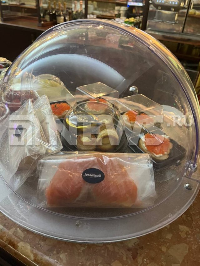 Также на закуску можно взять черную икру с волованами или сэт с красной икрой из четырех штук за 4 тысячи рублей. Стандартные бутерброды с колбасой можно приобрести за 350 рублей, а с осетриной горячего копчения — за 500, - сообщает News.ru.