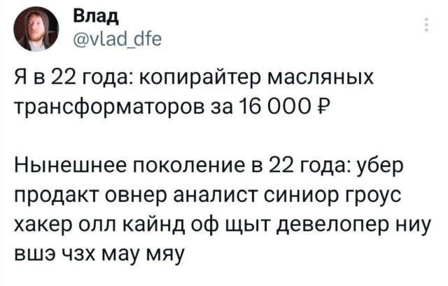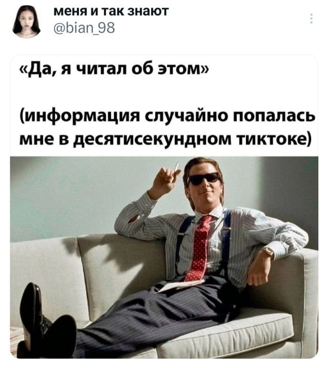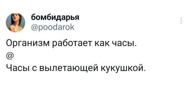 Коллекция забавных твитов на любой вкус 01/11/2024 14:00 Новенькая подборка остроумных твитов уже здесь! Этот пост не требует долгого представления, так что устраивайтесь поудобнее и наслаждайтесь юмором. Главная / Картинки +3 Admin 0 181