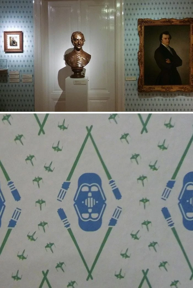 В Словацкой национальной галерее на выставке предметов искусства XIX века стены украшают обои со "Звездными войнами"