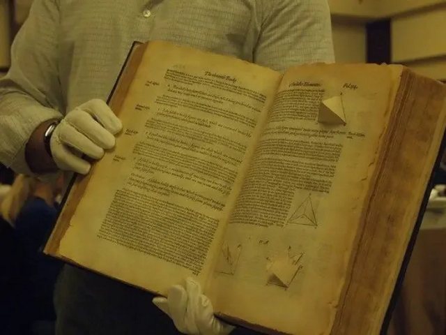 Это учебник по геометрии с объёмными деталями 1570 года. В 1570 году британец Генри Биллингсли перевёл тринадцать книг Евклида, и выпустил совершенно уникальное издание геометрии, с объёмными фигурами.
