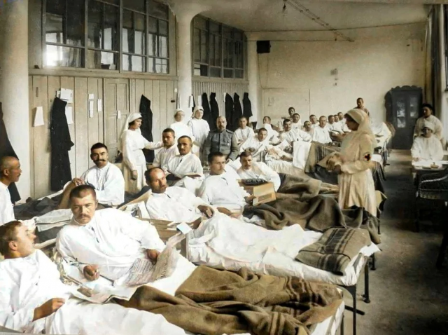 Времена первой мировой. Раненые в лазарете городского кредитного общества. Москва, 1914 год.