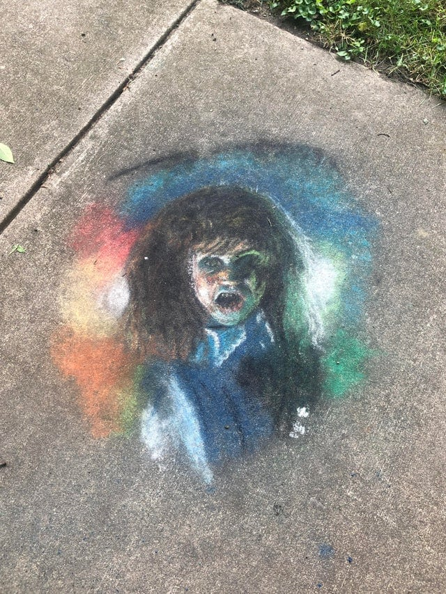 Это Риган из «Изгоняющего дьявола». Интересный выбор для рисунка мелками.