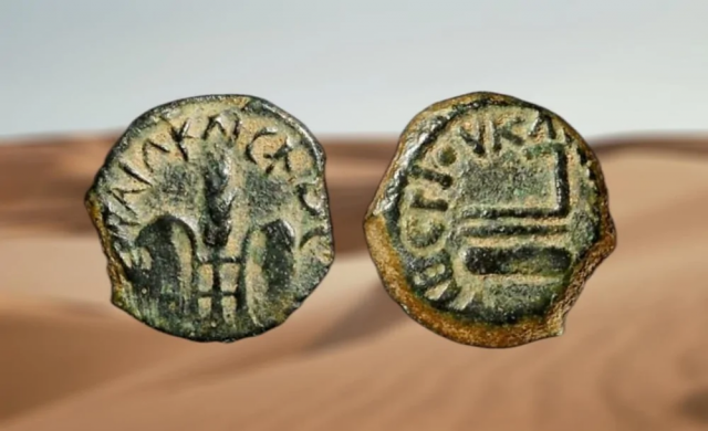 Бронзовая монета Понтия Пилата, префекта Иудеи при римском императоре Тиберии.