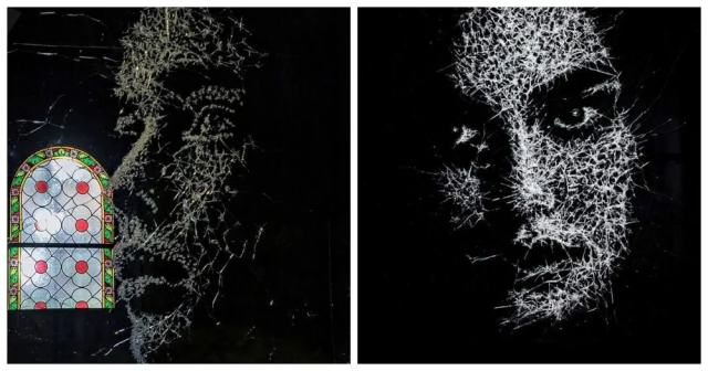 Художник Симон Бергер выбивает портреты на стекле с помощью молотка и зубила. Работа начинается с того, что художник фотографирует моделей и распечатывает снимок. Затем на стекле отмечает места, где он должен ударить молотком.