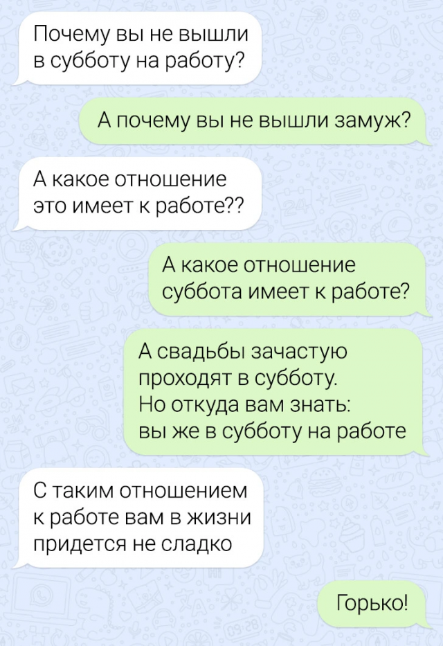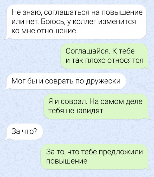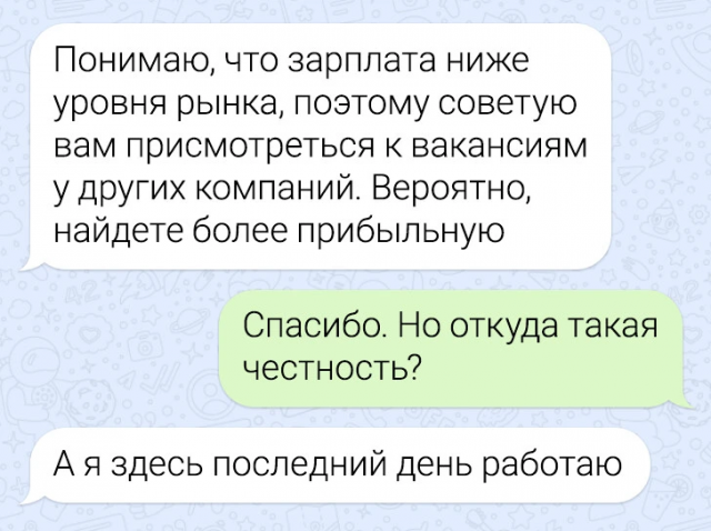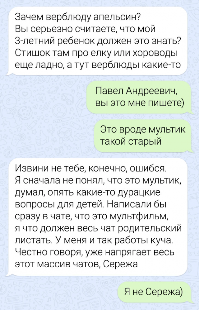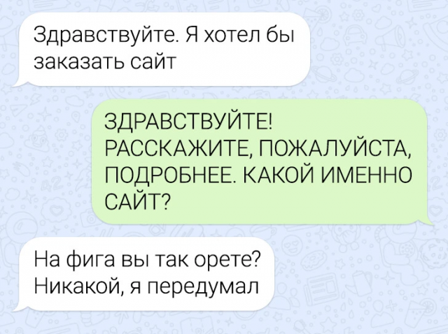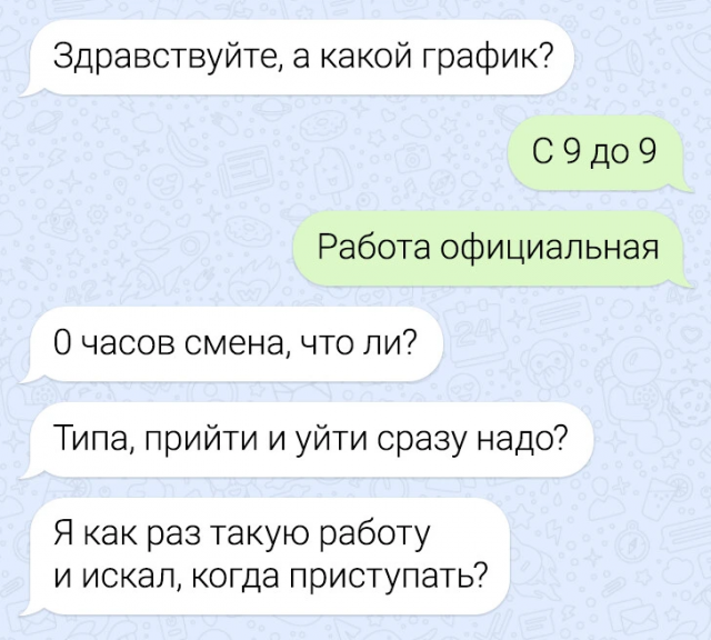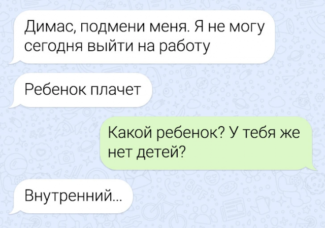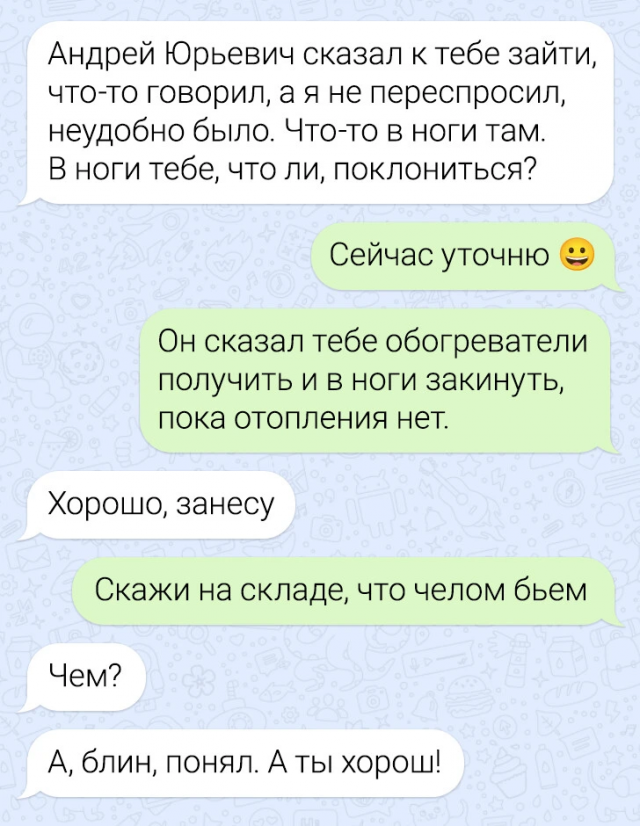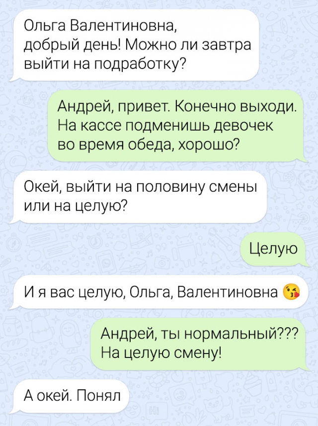 Курьезы из переписок 25/11/2024 15:00 Современная жизнь прочно связана с мессенджерами и соцсетями, где мы проводим большую часть общения. Забавные и неожиданные моменты из этих переписок заставляют улыбнуться, ведь там происходят курьезы, которые делают день ярче. Главная / Картинки +2 Admin 0 264