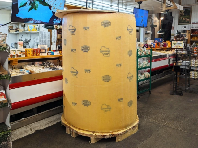 Это головка сыра высотой почти 2 метра