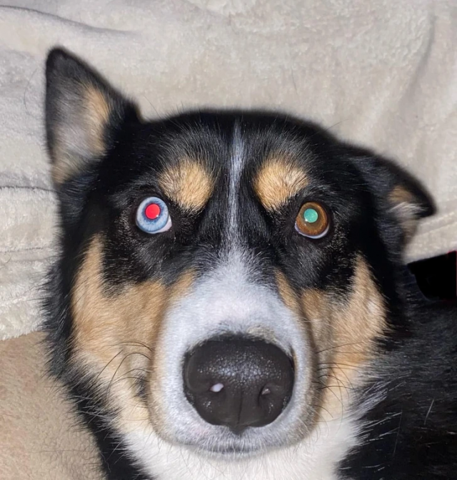 У собаки с гетерохромией зрачки при свете отражаются по-разному