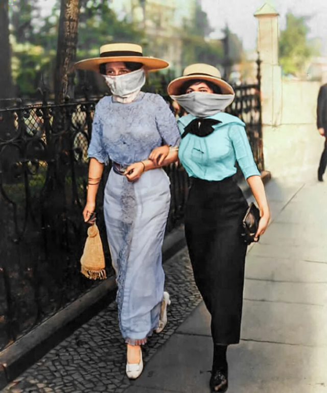 Женщины ходят в масках из-за испанского гриппа. 1918 год.