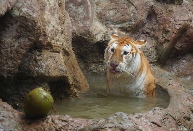 Знакомьтесь, Ава — золотая тигрица, которая стала популярной в социальных сетях. Она родом из Таиланда и привлекла внимание своей необычайной внешностью и милым характером. Сотрудники зоопарка рассказывают, что тигрица отличается добротой и игривостью, часто развлекается сама и обожает отдыхать. В общем, это просто огромный и полосатый кот!