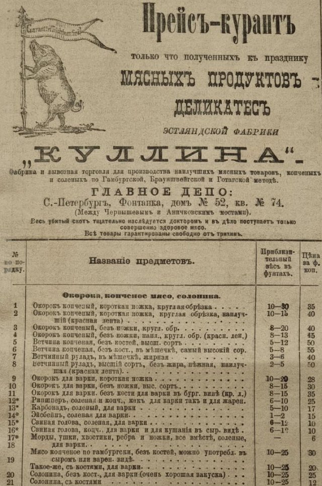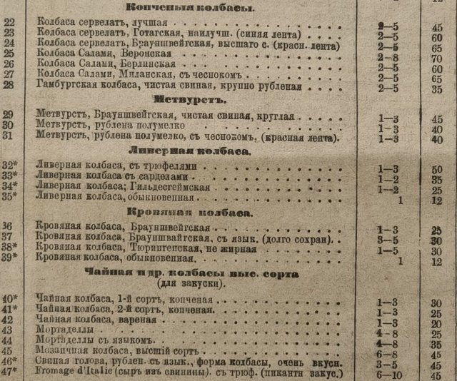 Мясные деликатесы, доступные в Санкт-Петербурге 140 лет назад