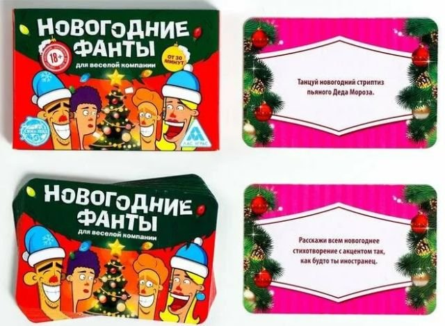 Веселая карточная игра с заданиями на новогоднюю тематику станет хитом на любой праздничной вечеринке. Фанты подходят как для семейного круга, так и для шумной компании друзей.
