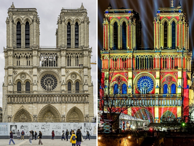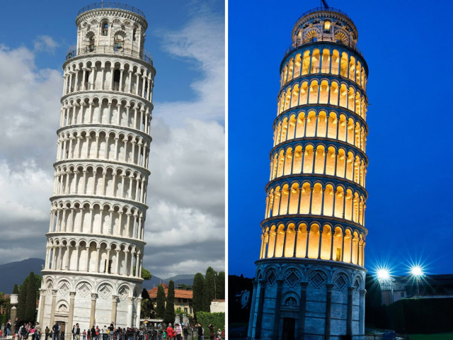 Ночная подсветка может полностью преобразить внешний вид известных зданий и архитектурных памятников. Фотографии, сделанные днем и ночью, показывают, как игра света и тени изменяет восприятие этих объектов. В дневное время они выглядят величественно, а вечером, благодаря подсветке, обретают совершенно новый, часто магический облик.
