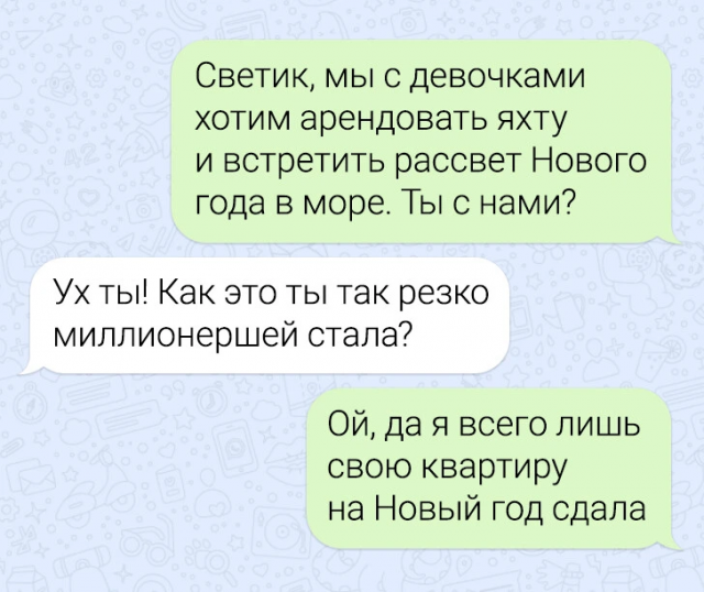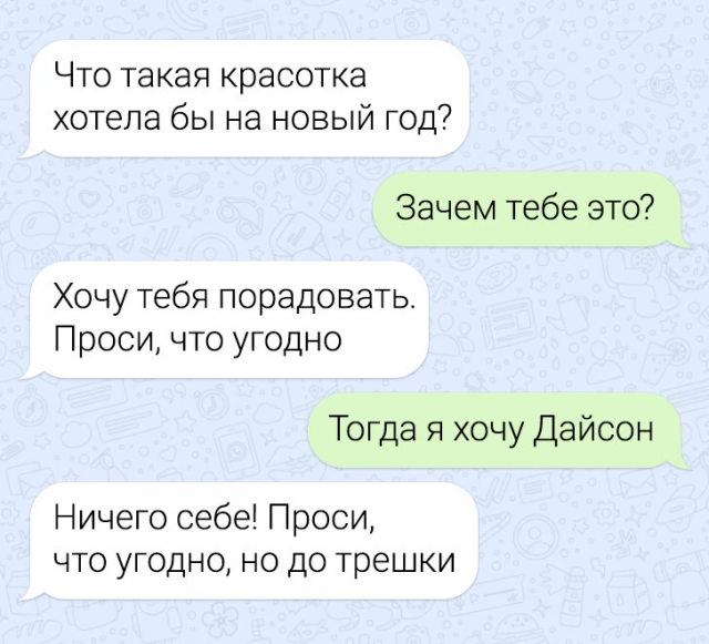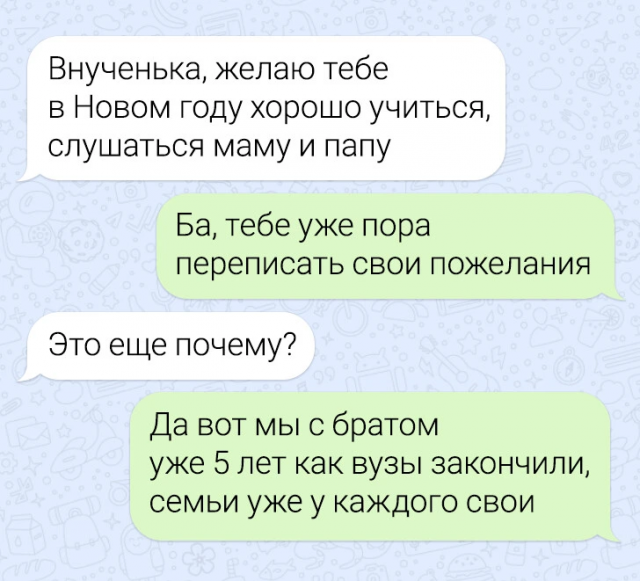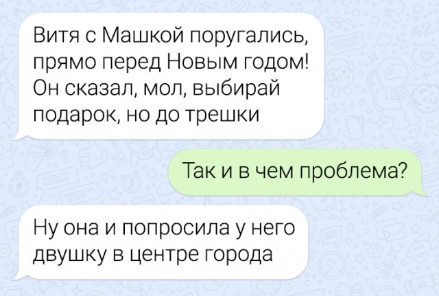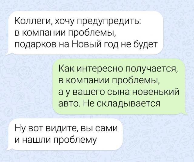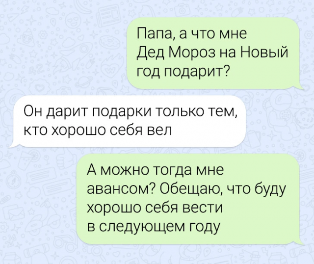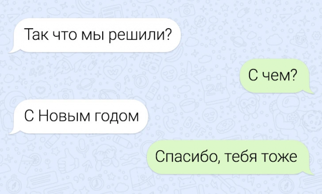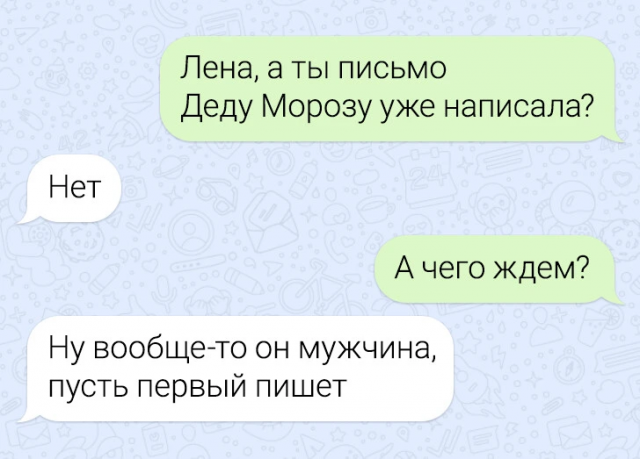 В преддверии Нового года многие погружаются в суету: корпоративы, выбор подарков, поздравления. Эти темы часто становятся причиной смешных ситуаций и казусов, которые возникают в переписках. Мы подготовили для вас новую подборку забавных и новогодних переписок.