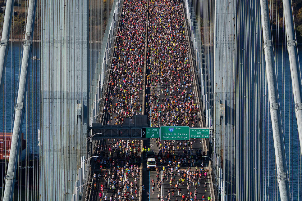 Бегуны пересекают мост Верраццано-Нэрроус во время Нью-Йоркского марафона. (Фото Craig T. Fruchtman):