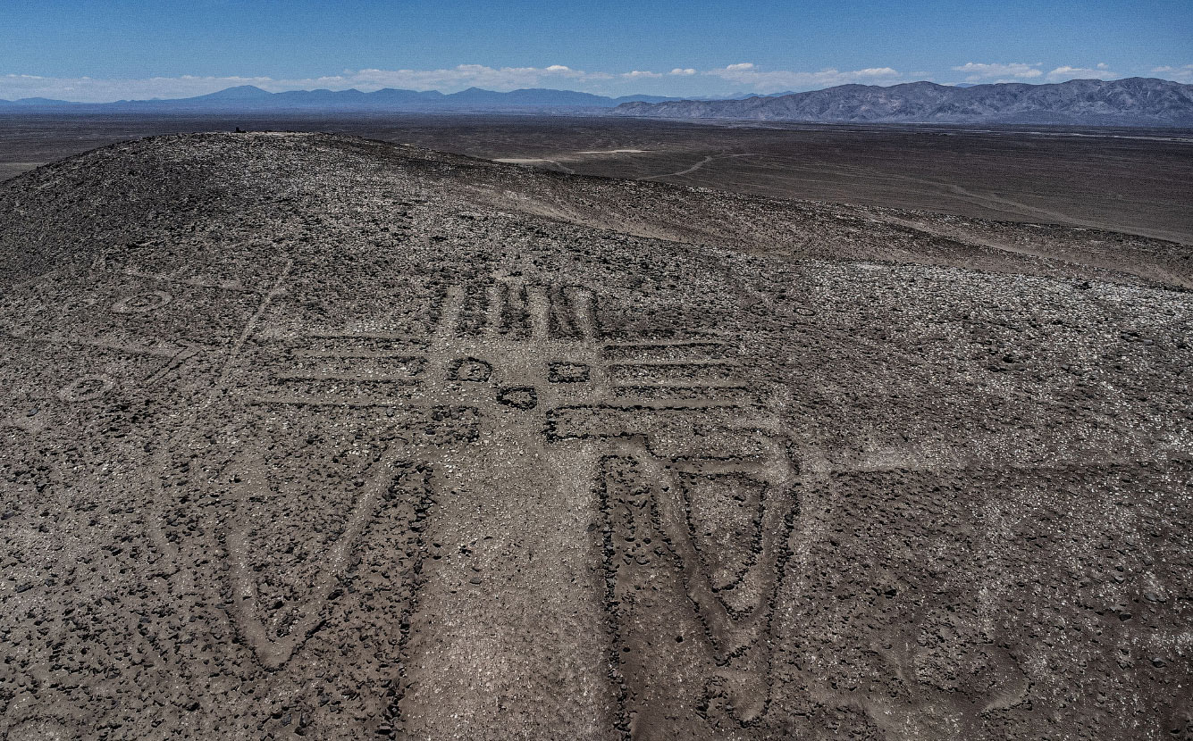 На снимке с дрона виден древний геоглиф «Эль-Гиганте-де-Тарапака», расположенный на холме «Унита» недалеко от города Уара в пустыне Атакама, Икике. (Фото Ivan Alvarado):